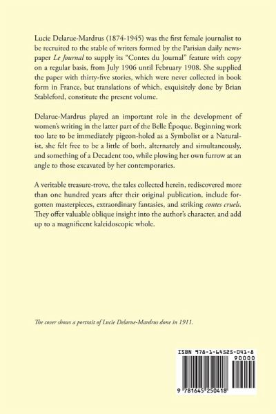 Lucie Delarue-Mardrus (1874-1945) was the first female journalist to be recruited to the stable of writers formed by the Parisian daily newspaper Le Journal to supply its "Contes du Journal" feature with copy on a regular basis, from July 1906 until February 1908. She supplied the paper with thirty-five stories, which were never collected in book form in France, but translations of which, exquisitely done by Brian Stableford, constitute the present volume. Delarue-Mardrus played an important role in the development of women's writing in the latter part of the Belle Époque. Beginning work too late to be immediately pigeon-holed as a Symbolist or a Naturalist, she felt free to be a little of both, alternately and simultaneously, and something of a Decadent too, while plowing her own furrow at an angle to those excavated by her contemporaries. A veritable treasure-trove, the tales collected herein, rediscovered more than one hundred years after their original publication, include forgotten masterpieces, extraordinary fantasies, and striking contes cruels. They offer valuable oblique insight into the author's character, and add up to a magnificent kaleidoscopic whole.
