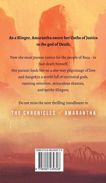 As a Slinger, Amarantha swore her Oaths of Justice to the god of Death. Now she must pursue justice for the people of Roca - or face death itself. Her pursuit leads her on a one-way pilgrimage of love and danger in a world full of territorial gods, cunning monsters, miraculous shaman, and quirky Slingers. Do not miss the next thrilling installment in The Chronicles of Amarantha www.rmrhodes.com