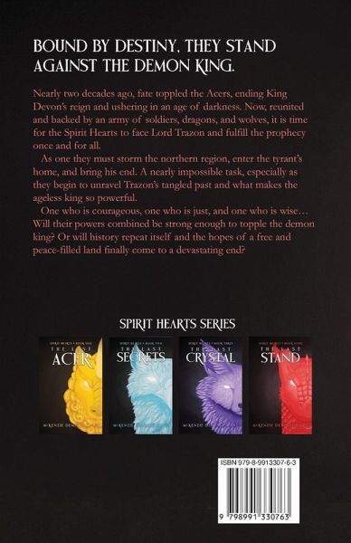 Nearly two decades ago, fate toppled the Acers, ending King Devon's reign and ushering in an age of darkness. Now, reunited and backed by an army of soldiers, dragons, and wolves, it is time for the Spirit Hearts to face Lord Trazon and fulfill the prophecy once and for all. As one they must storm the northern region, enter the tyrant's home, and bring his end. A nearly impossible task, especially as they begin to unravel Trazon's tangled past and what makes the ageless king so powerful. One who is courageous, one who is just, and one who is wise... Will their powers combined be strong enough to topple the demon king? Or will history repeat itself and the hopes of a free and peace-filled land finally come to a devastating end?