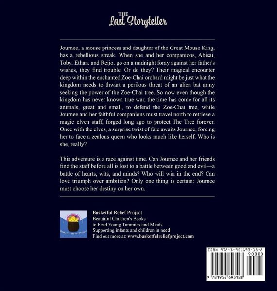 Fire Tests the Purity of Silver and Gold, but the Lord Tests the Heart. Journee, a mouse princess and daughter of the Great Mouse-King, has a rebellious streak. When she and her companions, Abisai, Toby, Ethan, and Reijo, go on a midnight foray against her father's wishes, they find trouble. Or do they? Their magical encounter deep within the enchanted Zoe-Chai orchard might be just what the kingdom needs to thwart a perilous threat of an alien bat army seeking the power of the Zoe-Chai tree. So now even though the kingdom has never known true war, the time has come for all its animals, great and small, to defend the Zoe-Chai tree, while Journee and her faithful companions must travel north to retrieve a magic elven staff, forged long ago to protect The Tree forever. Once with the elves, a surprise twist of fate awaits Journee, forcing her to face a zealous queen who looks much like herself. Who is she, really? This adventure is a race against time. Can Journee and her friends find the staff before all is lost to a battle between good and evil-a battle of hearts, wits, and minds? Who will win in the end? Can love triumph over ambition? Only one thing is certain: Journee must choose her destiny on her own. The Last Storyteller is the fourth book in The Pearls of Wisdom Series: Stories Inspired by Biblical Proverbs. The Last Storyteller is a children's chapter book for ages 9 and up.