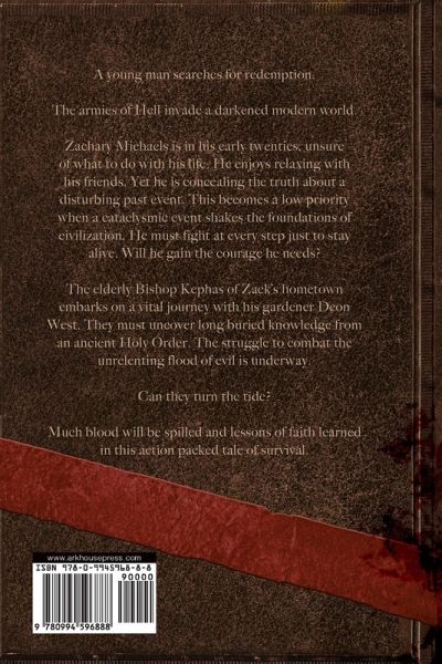 A young man searches for redemption. The armies of Hell invade a darkened modern world. Zachary Michaels is in his early twenties, unsure of what to do with his life. He enjoys relaxing with his friends. Yet he is concealing the truth about a disturbing past event. This becomes a low priority when a cataclysmic event shakes the foundations of civilization. He must fight at every step just to stay alive. Will he gain the courage he needs? The elderly Bishop Kephas of Zack’s hometown embarks on a vital journey with his gardener Deon West. They must uncover long buried knowledge from an ancient Holy Order. The struggle to combat the unrelenting flood of evil is underway. Can they turn the tide? Much blood will be spilled and lessons of faith learned in this action packed tale of survival.