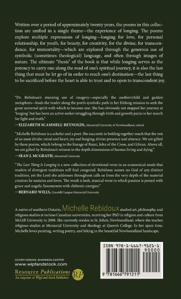 Written over a period of approximately twenty years, the poems in this collection are unified in a single theme--the experience of longing. The poems explore multiple expressions of longing--longing for love, for personal relationship, for youth, for beauty, for creativity, for the divine, for transcendence, for immortality--which are explored through the generous use of symbolic (sometimes theological) language, and often through images of nature. The ultimate ""thesis"" of the book is that while longing serves as the potency to carry one along the road of one's spiritual journey, it is also the last thing that must be let go of in order to reach one's destination--the last thing to be sacrificed before the heart is able to trust and to open to transcendent joy.