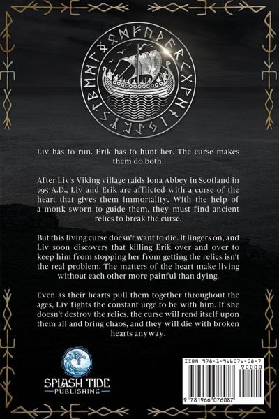 Liv has to run. Erik has to hunt her. The curse makes them do both. After Liv's Viking village raids Iona Abbey in Scotland in 795 A.D., Liv and Erik are afflicted with a curse of the heart that gives them immortality. With the help of a monk sworn to guide them, they must find ancient relics to break the curse. But this living curse doesn't want to die. It lingers on, and Liv soon discovers that killing Erik over and over to keep him from stopping her from getting the relics isn't the real problem. The matters of the heart make living without each other more painful than dying. Even as their hearts pull them together throughout the ages, Liv fights the constant urge to be with him. If she doesn't destroy the relics, the curse will rend itself upon them all and bring chaos, and they will die with broken hearts anyway.