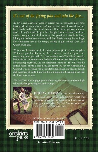 It's out of the frying pan and into the fire... It's 1955, and Charlotte "Charley" Mason has just moved to New York, leaving behind her hometown in Georgia, her group of baseball-playing best friends, and her boyfriend, Frankie. Things in her perfect new town aren't all they're cracked up to be, though. Her relationship with her mother has gone from bad to worse, her grandpa's leukemia is slowly killing him before her very eyes, and the athletic tomboy has to begin her sophomore year at the preppy, snobby all-girls school, Our Lady Queen of Angels. When a confrontation with the most popular girl in school, Angelica Whitman, goes horribly wrong, her chances at social acceptance are completely destroyed. What's a poor tomboy to do? She'll have to make lemonade out of lemons with the help of her new best friend, Victoria, her amazing boyfriend, and her perseverant attitude. She will join the softball team, attend a sock hop, get detention, run for Homecoming Queen, have a sleepover, make friends (and enemies), stay true to herself, and overcome all odds. But even then, it might not be enough. All that she loves may be lost. The Last Time is an engaging novel about a girl who faces universal high school challenges with grace and courage.