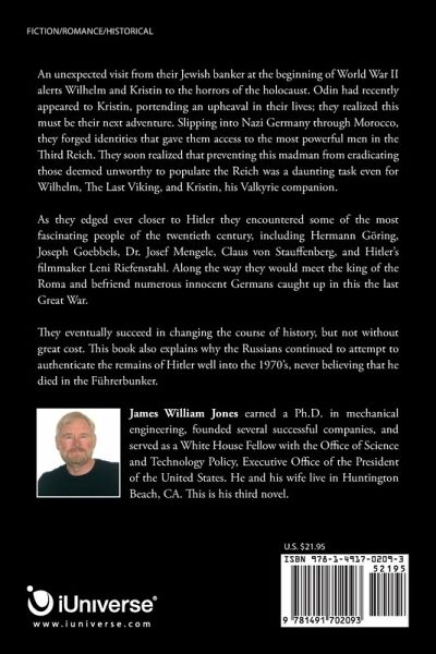 An unexpected visit from their Jewish banker at the beginning of World War II alerts Wilhelm and Kristin to the horrors of the holocaust. Odin had recently appeared to Kristin, portending an upheaval in their lives; they realized this must be their next adventure. Slipping into Nazi Germany through Morocco, they forged identities that gave them access to the most powerful men in the Third Reich. They soon realized that preventing this madman from eradicating those deemed unworthy to populate the Reich was a daunting task even for Wilhelm, Th e Last Viking, and Kristin, his Valkyrie companion. As they edged ever closer to Hitler they encountered some of the most fascinating people of the twentieth century, including Hermann Göring, Joseph Goebbels, Dr. Josef Mengele, Claus von Stauff enberg, and Hitler's filmmaker Leni Riefenstahl. Along the way they would meet the king of the Roma and befriend numerous innocent Germans caught up in this the last Great War. They eventually succeed in changing the course of history, but not without great cost. This book also explains why the Russians continued to attempt to authenticate the remains of Hitler well into the 1970's, never believing that he died in the Führerbunker.