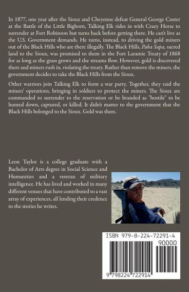 In 1877, one year after the Sioux and Cheyenne defeated General George Custer at the Battle of the Little Bighorn, Talking Elk, a prominent war chief, rides in with Crazy Horse to surrender at Fort Robinson but turns back before getting there. He can't live as the U.S. Government demands. He turns, instead, to driving the gold miners out of the Black Hills who are there illegally. The Black Hills, Paha Sapa, sacred land to the Sioux, was promised to them in the Fort Laramie Treaty of 1868 "for the absolute and undisturbed use and occupation of the Indians." However, after General Custer entered the Black Hills illegally and discovered gold there in 1874, miners rushed in, violating the treaty. Small mining camps grew into larger camps, like Deadwood and Custer, with merchants, saloons, and brothels, all in contradiction to the treaty. Rather than remove the miners, the government decided to take the Black Hills from the Sioux, which it did illegally, passing the Congressional Act of February 28, 1877. Other warriors join Talking Elk to form a war party. Together, they raid the miners' operations, bringing in soldiers to protect the miners. The Sioux are commanded to surrender to the reservation or be branded as "hostile" to be hunted down, captured, or killed. It didn't matter to the government that the Black Hills belonged to the Sioux. Gold was there.