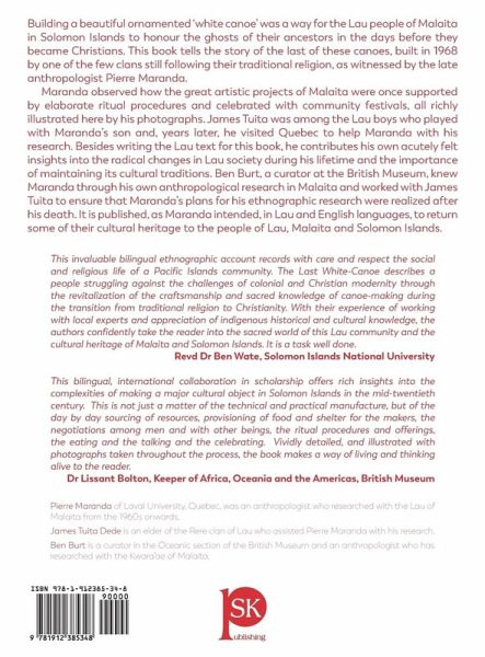 This bilingual book, a collaboration by an anthropologist, clan elder and curator, tells the story of the last of the beautifully ornamented 'white canoes' built by the Lau people of Malaita in Solomon Islands to honour the ghosts of their ancestors.