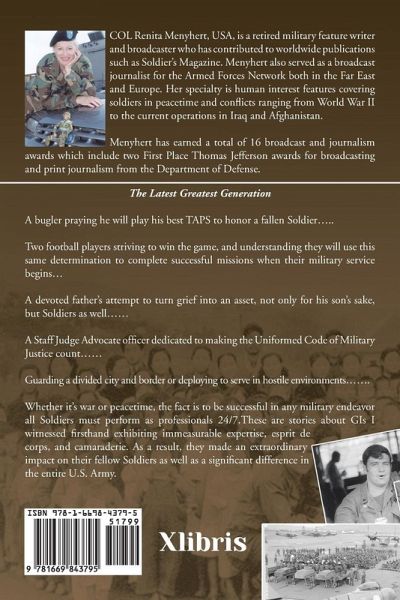 The Latest Greatest Generation A Bugler praying he will play his best TAPS to honor a fallen Soldier..... Two football players striving to win the game, and understanding they will use this same determination to complete the successful missions when their military service begins... A devoted father's attempt to turn grief into an asset, not only for his son's sake, but Soldiers as well.... A Staff Judge Advocate officer dedicated to making the Uniformed Code of Military Justice count..... Guarding a divided city and border or deploying to serve in hostile environments.... Whether it's war or peacetime, the fact is to be successful in any military endeavor all Soldiers must perform as professionals 24/7. These are stories about GIs I witnessed firsthand exhibiting immeasurable expertise, esprit de corps, and camaraderie. As a result, they made an extraordinary impact on their fellow Soldiers as well as a significant difference in the entire U.S. Army.