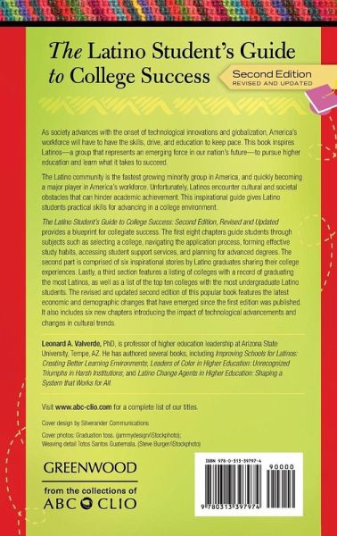 This book provides Latino students with a step-by-step roadmap for navigating the college process-from overcoming cultural barriers to attending college, to selecting the right school, to considering advanced degrees. The Latino community is the fastest growing minority group in America, and quickly becoming a major player in America's workforce. Unfortunately, Latinos encounter cultural and societal obstacles that can hinder academic achievement. This inspirational guide gives Latino students practical skills for advancing in a college environment. The Latino Student's Guide to College Success: Second Edition, Revised and Updated provides a blueprint for collegiate success. The first eight chapters guide students through subjects such as selecting a college, navigating the application process, forming effective study habits, accessing student support services, and planning for advanced degrees. The second part is comprised of eight inspirational stories by Latino graduates sharing their college experiences. Lastly, a third section features a listing of colleges with a record of graduating the most Latinos, as well as a list of the top ten colleges with the most undergraduate Latino students. The revised and updated second edition of this popular book features the latest economic and demographic changes that have emerged since the first edition was published. It also includes six new chapters introducing the impact of technological advancements and changes in cultural trends.