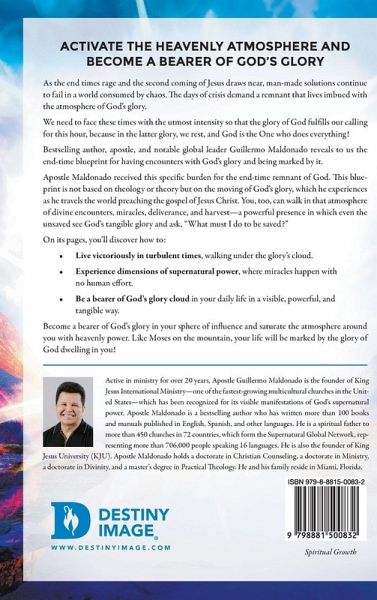 ACTIVATE THE HEAVENLY ATMOSPHERE AND BECOME A BEARER OF GOD'S GLORY As the end times rage and the second coming of Jesus draws near, man-made solutions continue to fail in a world consumed by chaos. The days of crisis demand a remnant that lives imbued with the atmosphere of God's glory. We need to face these times with the utmost intensity so that the glory of God fulfills our calling for this hour, because in the latter glory, we rest, and God is the One who does everything! Bestselling author, apostle, and notable global leader Guillermo Maldonado reveals to us the end-time blueprint for having encounters with God's glory and being marked by it. Apostle Maldonado received this specific burden for the end-time remnant of God. This blueprint is not based on theology or theory but on the moving of God's glory, which he experiences as he travels the world preaching the gospel of Jesus Christ. You, too, can walk in that atmosphere of divine encounters, miracles, deliverance, and harvest-a powerful presence in which even the unsaved see God's tangible glory and ask, "What must I do to be saved?" On its pages, you'll discover how to: Live victoriously in turbulent times, walking under the glory's cloud. Experience dimensions of supernatural power, where miracles happen with no human effort. Be a bearer of God's glory cloud in your daily life in a visible, powerful, and tangible way. Become a bearer of God's glory in your sphere of influence and saturate the atmosphere around you with heavenly power. Like Moses on the mountain, your life will be marked by the glory of God dwelling in you!