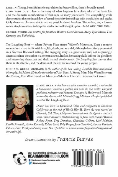 Fade in: Young, beautiful movie star shines in feature films, then is brutally raped. Slow Fade Out: Here is the story of what happens in a close take of her later life and the dramatic ramifications of that rape so many years later. This compelling work demonstrates the continued flow of sexual electricity into old age with shocks, jolts and sparks. Only character plus restraint to act are possible circuit breakers. The author, yes, a former movie star, knows how to keep the reader enthralled right up to…fade out: the end. George Atkins has written for Jonathan Winters, Carol Burnett, Mary Tyler Moore, Tim Conway, and Bullwinkle. The Laughing Bear — where Peyton Place meets Walton’s Mountain. Even a remote mountain enclave is rife with love, life, death, and scandal, although deceptively presented in a Norman Rockwell setting. The engaging story is a great read, and, not surprisingly cinematic since the author is a veteran actress. In fact, her acting skills inform the plot lines and interesting characters and their natural development. The Laughing Bear proves that there is life after 60, and the dramas of life are not reserved for young people. Michael Gregg Michaud is the author of the best-selling, Lambda Book nominated biography, Sal Mineo. He is also the author of Alan Sues, A Funny Man; Mae West: Between the Covers; Mae West Broadcast Muse; and Marlene Dietrich: Between the Covers. Diane McBain has been an actor, a mother, an artist, a naturalist, a homelessness activist, a quilter, and now she is a writer. Her first published endeavor was Famous Enough: A Hollywood Memoir, authorship shared with Michael Gregg Michaud. Her first published novel is The Laughing Bear. Diane was born in Cleveland, Ohio and emigrated to Southern California at the end of World War II. There she was reared in Glendale, CA. Then, Hollywood beckoned and she signed a contract with Warner Brothers’ Studios starring in films with Richard Burton, Robert Ryan, Troy Donahue, Claudette Colbert, Karl Malden, Debbie Reynolds, Arthur Kennedy, Robert Stack, Polly Bergen, Joan Crawford, Annette Funicello, Fabian, Elvis Presley and many more. Her reputation as a consummate professional has followed her entire life.
