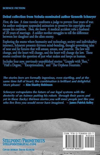 Tales to Bend the Mind & SoulDebut collection of science fiction tales from Nebula-nominated author Kenneth Schneyer First, the law. A time traveler confronts a judge to prevent four years of war. An author undergoes suspended animation to preserve his copyrights and escape his creditors. Then, the heart. A medical accident robs a husband of 20 years of marriage. A soldier mother struggles to tell the difference between her daughter and the alien enemy. Exploring the seams where humanity and technology, society and individuality intersect, Nebula- and Sturgeon-nominated author Kenneth Schneyer presents thirteen mind-bending, thought-provoking tales of near and far futures that will amuse, amaze, and unsettle. The law will change, and the heart will change, and the heart will change the law. These stories confront the question of just what makes and keeps us human.