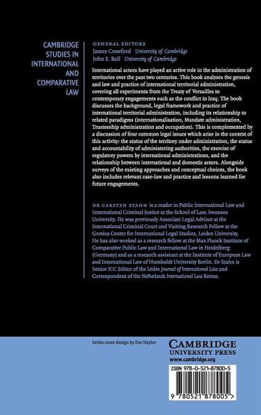 International actors have played an active role in the administration of territories over the past two centuries. This book analyses the genesis and law and practice of international territorial administration, covering all experiments from the Treaty of Versailles to contemporary engagements such as the conflict in Iraq. The book discusses the background, legal framework and practice of international territorial administration, including its relationship to related paradigms (internationalisation, mandate administration, trusteeship administration and occupation). This is complemented by a discussion of four common legal issues which arise in the context of this activity: the status of the territory under administration, the status and accountability of administering authorities, the exercise of regulatory powers by international administrations, and the relationship between international and domestic actors. Alongside surveys of the existing approaches and conceptual choices, the book also includes relevant case-law and practice and lessons learned for future engagements.