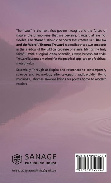 The ""Law"" is the laws that govern thought and the forces of nature, the phenomena that we perceive, things that are not flexible. The ""Word"" is the divine power that creates. In ""The Law and the Word"", Thomas Troward reconciles these two concepts in the shadow of the Biblical promise of eternal life for the truly faithful. With a logical, often scientific, always benevolent style, Troward lays out a method for the practical application of spiritual metaphysics. Essentially Through analogies and references to contemporary science and technology (the telegraph, radioactivity, flying machines), Thomas Troward brings his points home to modern readers.