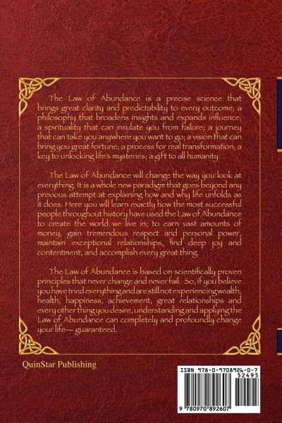 The Law of Abundance is a precise science that brings great clarity and predictability to every outcome; a philosophy that broadens insights and expands influence; a spirituality that can insulate you from failure; a journey that can take you anywhere you want to go; a vision that can bring you great fortune; a process for real transformation; a key to unlocking life's mysteries; a gift to all humanity. This book will change the way you look at everything. It presents a completely new paradigm that goes far beyond any previous attempt at explaining how and why life unfolds as it does. Here you will learn exactly how the most successful people throughout history have used the Law of Abundance to create the world we live in, to earn vast amounts of money, gain tremendous respect and personal power, maintain exceptional relationships, find deep joy and contentment, and accomplish every great thing. The Law of Abundance is based on scientifically proven principles that never change and never fail. So, if you believe you have tried everything and are still not experiencing wealth, health, happiness, achievement, great relationships and every other thing you desire, understanding and applying the Law of Abundance can completely and profoundly change your life - guaranteed.
