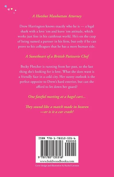 A Hotshot Manhattan Attorney. Drew Harrington knows exactly who he is-a legal shark with a love 'em and leave 'em attitude that works just fine in his cutthroat world. He's on the cusp of being named a partner in his firm, but only if he can prove to his colleagues that he has a more human side. A Sweetheart of a British Patisserie Chef. Becky Fletcher is running from her past, so the last thing she's looking for is love. What she does want is a friendly face in a cold city. Her sunny outlook is the perfect opposite to Drew's hard exterior, but can she afford to let down her guard? One fateful meeting at a bagel cart. They sound like a match made in heaven-or is it a car crash?