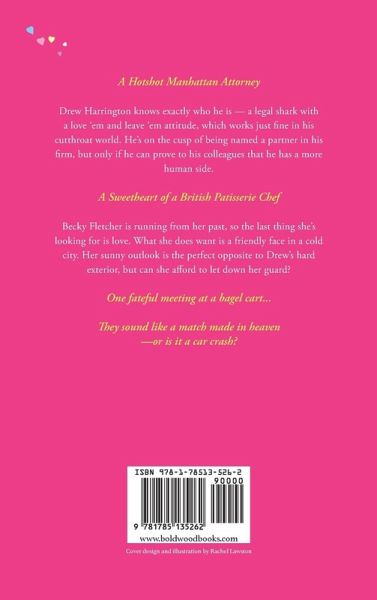 A Hotshot Manhattan Attorney. Drew Harrington knows exactly who he is-a legal shark with a love 'em and leave 'em attitude that works just fine in his cutthroat world. He's on the cusp of being named a partner in his firm, but only if he can prove to his colleagues that he has a more human side. A Sweetheart of a British Patisserie Chef. Becky Fletcher is running from her past, so the last thing she's looking for is love. What she does want is a friendly face in a cold city. Her sunny outlook is the perfect opposite to Drew's hard exterior, but can she afford to let down her guard? One fateful meeting at a bagel cart. They sound like a match made in heaven-or is it a car crash?