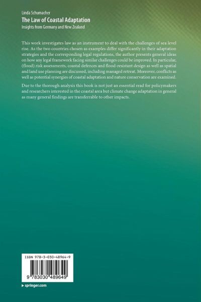 This work investigates law as an instrument to deal with the challenges of sea level rise. As the two countries chosen as examples differ significantly in their adaptation strategies and the corresponding legal regulations, the author presents general ideas on how any legal framework facing similar challenges could be improved. In particular, (flood) risk assessments, coastal defences and flood-resistant design as well as spatial and land use planning are discussed, including managed retreat. Moreover, conflicts as well as potential synergies of coastal adaptation and nature conservation are examined.Due to the thorough analysis this book is not just an essential read for policymakers and researchers interested in the coastal area but climate change adaptation in general as many general findings are transferrable to other impacts.