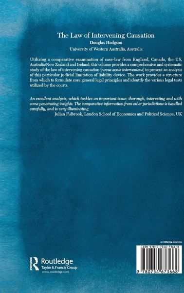 Contents: Part I Introduction: Introduction Early judicial development of intervening causation law. Part II The Legal Tests: Reasonable foreseeability Unreasonableness/abnormality Voluntary and deliberate human action Probability Scope of risk. Part III Operative Contexts: Intervening negligent acts and omissions Extraordinary natural phenomena, coincidences and animals Maritime incidents The suicide cases Professional malpractice Rescue of persons and property Children Escaping from danger and inconvenience Negligence causing susceptibility to later harm Miscellaneous operative contexts. Part IV Conclusion: The influence of contributory negligence and apportionment legislation on intervening causation issues The inter-relationship between remoteness of damage and novus actus interveniens Conclusion Index.
