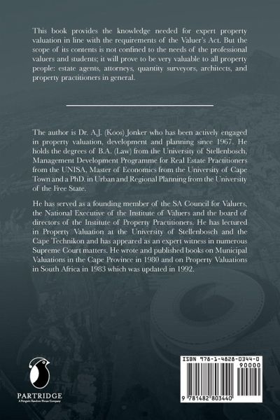 This book provides the knowledge needed for expert property valuation in line with the requirements of the Valuer's Act. But the scope of its contents is not confined to the needs of the professional valuers and students; it will prove to be very valuable to all property people: estate agents, attorneys, quantity surveyors, architects, and property practitioners in general.