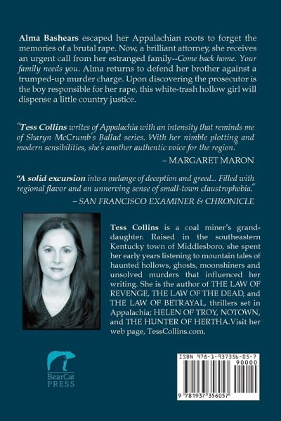 Alma Bashears escaped her Appalachian roots to forget the memories of a brutal rape. Now, a brilliant attorney, she receives an urgent call from her estranged family-Come back home. Your family needs you. Alma returns to defend her brother against a trumped-up murder charge. Upon discovering the prosecutor is the boy responsible for her rape, this white-trash hollow girl will dispense a little country justice.