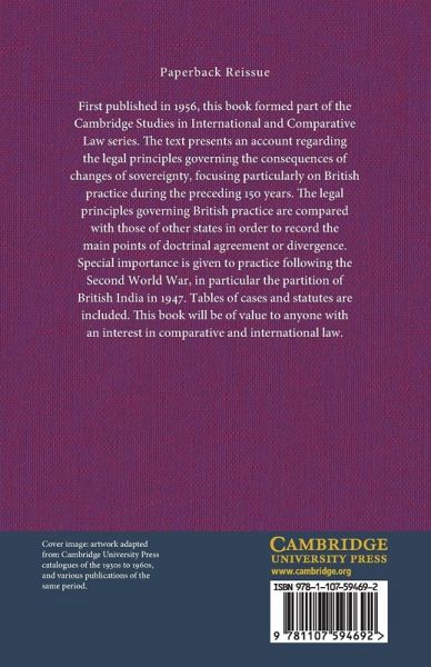 First published in 1956, this book formed part of the Cambridge Studies in International and Comparative Law series. The text presents an account regarding the legal principles governing the consequences of changes of sovereignty, focusing particularly on British practice during the preceding 150 years. The legal principles governing British practice are compared with those of other states in order to record the main points of doctrinal agreement or divergence. Special importance is given to practice following the Second World War, in particular the partition of British India in 1947. Tables of cases and statutes are included. This book will be of value to anyone with an interest in comparative and international law.