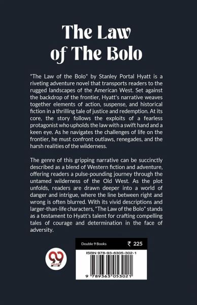 "The Law of the Bolo" by Stanley Portal Hyatt is a riveting adventure novel that transports readers to the rugged landscapes of the American West. Set against the backdrop of the frontier, Hyatt's narrative weaves together elements of action, suspense, and historical fiction in a thrilling tale of justice and redemption. At its core, the story follows the exploits of a fearless protagonist who upholds the law with a swift hand and a keen eye. As he navigates the challenges of life on the frontier, he must confront outlaws, renegades, and the harsh realities of the wilderness. The genre of this gripping narrative can be succinctly described as a blend of Western fiction and adventure, offering readers a pulse-pounding journey through the untamed wilderness of the Old West. As the plot unfolds, readers are drawn deeper into a world of danger and intrigue, where the line between right and wrong is often blurred. With its vivid descriptions and larger-than-life characters, "The Law of the Bolo" stands as a testament to Hyatt's talent for crafting compelling tales of courage and determination in the face of adversity.