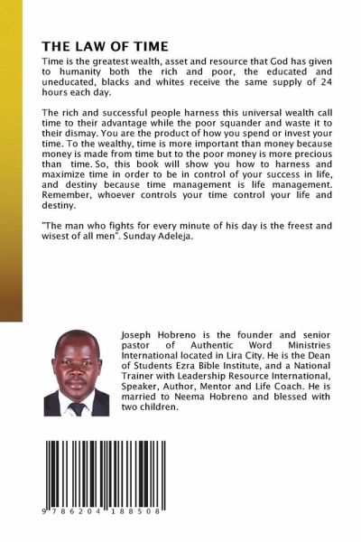 Time is the greatest wealth, asset and resource that God has given to humanity both the rich and poor, the educated and uneducated, blacks and whites receive the same supply of 24 hours each day.The rich and successful people harness this universal wealth call time to their advantage while the poor squander and waste it to their dismay. You are the product of how you spend or invest your time. To the wealthy, time is more important than money because money is made from time but to the poor money is more precious than time. So, this book will show you how to harness and maximize time in order to be in control of your success in life, and destiny because time management is life management. Remember, whoever controls your time control your life and destiny."The man who fights for every minute of his day is the freest and wisest of all men". Sunday Adeleja.
