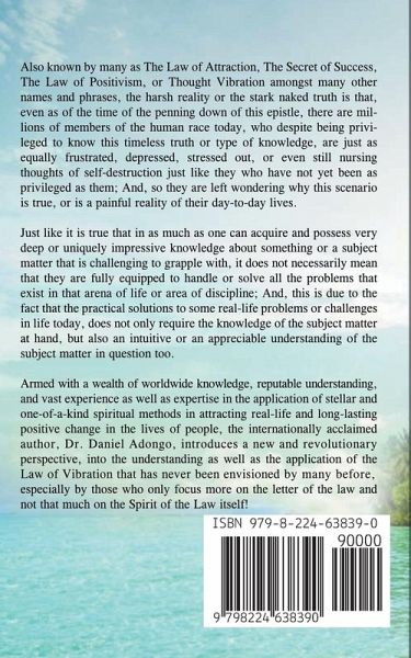Also known by many as The Law of Attraction, The Secret of Success, The Law of Positivism, or Thought Vibration amongst many other names and phrases, the harsh reality or the stark naked truth is that, even as of the time of the penning down of this epistle, there are millions of members of the human race today, who despite being privileged to know this timeless truth or type of knowledge, are just as equally frustrated, depressed, stressed out, or even still nursing thoughts of self-destruction just like they who have not yet been as privileged as them; And, so they are left wondering why this scenario is true, or is a painful reality of their day-to-day lives. Just like it is true that in as much as one can acquire and possess very deep or uniquely impressive knowledge about something or a subject matter that is challenging to grapple with, it does not necessarily mean that they are fully equipped to handle or solve all the problems that exist in that arena of life or area of discipline; And, this is due to the fact that the practical solutions to some real-life problems or challenges in life today, does not only require the knowledge of the subject matter at hand, but also an intuitive or an appreciable understanding of the subject matter in question too. Armed with a wealth of worldwide knowledge, reputable understanding, and vast experience as well as expertise in the application of stellar and one-of-a-kind spiritual methods in attracting real-life and long-lasting positive change in the lives of people, the internationally acclaimed author, Dr. Daniel Adongo, introduces a new and revolutionary perspective, into the understanding as well as the application of the Law of Vibration that has never been envisioned by many before, especially by those who only focus more on the letter of the law and not that much on the Spirit of the Law itself!