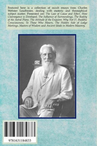 Featured here are a collection of occult essays, from notable spiritual author, Charles Webster Leadbeater, on a range of esoteric and theosophical topics. Included are: The Law of Cause and Effect, How Clairvoyance is Developed, The Influence of Surroundings, The Reality of the Astral Plane, The Attitude of the Enquirer, Why Not I?, Buddhic Consciousness, To Those Who Mourn, The Hidden Side of Lodge Meetings, Masters of Wisdom and Ancient Ideals in Modern Masonry.