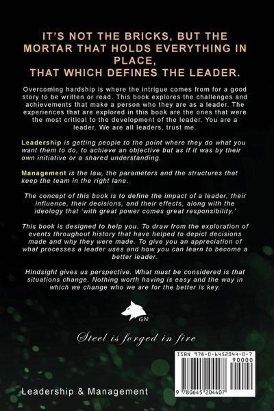 Overcoming hardship is where the intrigue comes from for a good story to be written or read. This book explores the challenges and achievements that make a person who they are as a leader. The experiences that are explored in this book are the ones that were most critical to the development of the leader. You are the leader. We are all leaders, trust me. Leadership is getting people to the point where they do what you want them to do, to achieve an objective but as if it was by their own initiative or a shared understanding. Management is the law, the parameters and the structures that keep the team in the right lane. The concept of this book is to define the impact of a leader, their influence, their decisions, and their effects, along with the ideology that 'with great power comes great responsibility.' This book is designed to help you. To draw from the exploration of events throughout history that have helped to depict decisions made and why they were made. To give you an appreciation of what processes a leader uses and how you can learn to become a better leader. Hindsight gives us perspective. What must be considered is that situations change. Nothing worth having is easy and the way in which we change who we are for the better is key. Steel is forged in fire. ¿