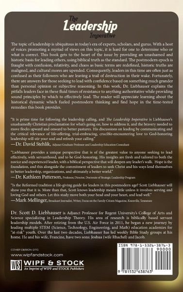The topic of leadership is ubiquitous in today's era of experts, scholars, and gurus. With a host of voices promoting a myriad of views on this topic, it is hard for one to determine who or what is correct. This book gets to the heart of the issue by providing an unashamed and historic basis for leading others, using biblical truth as the standard. The postmodern epoch is fraught with confusion, relativity, and chaos as basic terms are redefined, historic truths are maligned, and cultural mores are upended. Consequently, leaders in this time are often just as confused as their followers who are leaving a trail of destruction in their wake. Fortunately, there are answers for those seeking to lead with confidence based on something much grander than personal opinion or subjective reasoning. In this work, Dr. Liebhauser explains the pitfalls leaders face in these fluid times of resistance to anything authoritative while providing sound principles by which to effectively lead. The reader will appreciate learning about the historical dynamic which fueled postmodern thinking and find hope in the time-tested remedies this book provides.