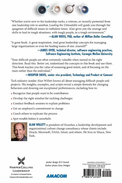 SOUNDVIEW BUSINESS BOOK OF THE YEAR Every manager has to deal with difficult employees. However, what separates the great managers is their ability to turn them into productive team players. Control freaks. Narcissists. Slackers. Cynics. Their outbursts, irrational demands, gripes, and countless other disruptions need to be dealt with, and you are the unlucky one with that job description. This book turns this seemingly difficult chore into a straight-forward process that gently, yet effectively, improves behaviors. It all begins with understanding a core truth: most people actually want to contribute results, not cause headaches. When the manager resets to that fundamental principle, the potential for change can reveal itself in even the most hopeless situations. Written by tech industry expert Alan Willett, Leading the Unleadable explains how to: Master the necessary mindset Explain the problem calmly in a short feedback session Get a commitment to change, then follow up Coach others to replicate the process Develop the situational awareness required to spot future trouble before it hits Are you a great manager? Of course you believe you are. So don't just put up with your difficult employees. Anyone can do that. Turn them into the tremendous team players everyone wants them to be!