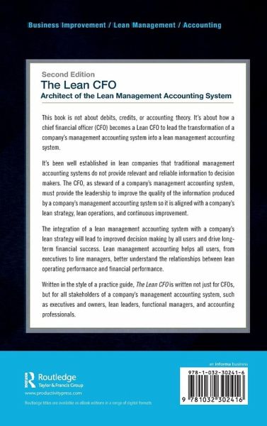 This book is not about debits, credits, or accounting theory. Instead, it describes how a chief financial officer (CFO) becomes a Lean CFO by leading a company in developing and deploying a Lean management system. The finance team, business executives, and Lean leaders will all benefit from its forward-thinking improvement approach.