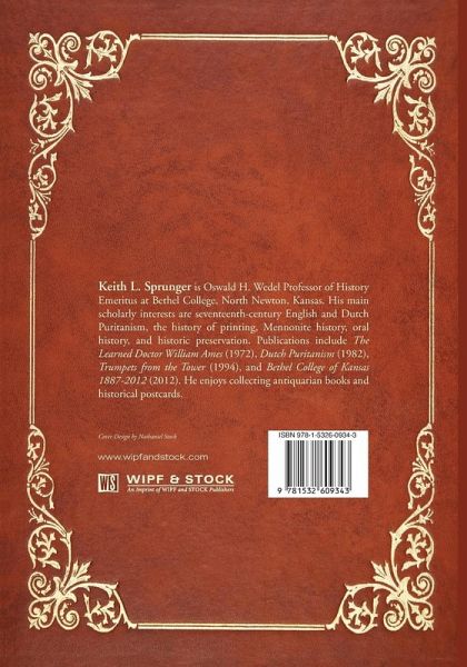 Keith L. Sprunger is Oswald H. Wedel Professor of History Emeritus at Bethel College, North Newton, Kansas. His main scholarly interests are seventeenth-century English and Dutch Puritanism, the history of printing, Mennonite history, oral history, and historic preservation. Publications include The Learned Doctor William Ames (1972), Dutch Puritanism (1982), Trumpets from the Tower (1994), and Bethel College of Kansas 1887-2012 (2012). He enjoys collecting antiquarian books and historical postcards.