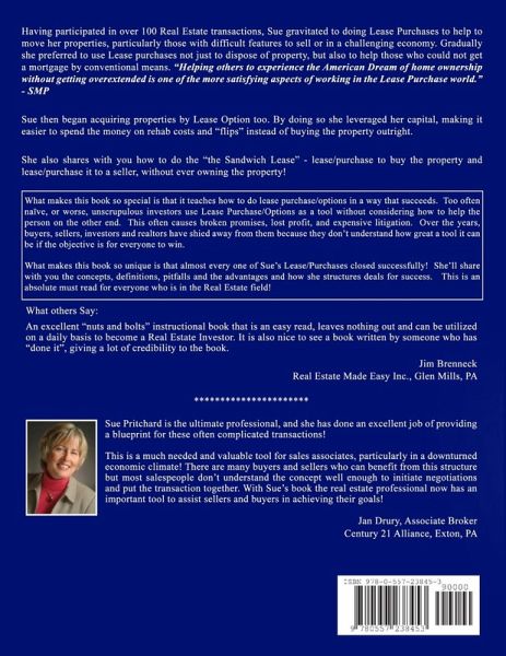 How to Buy and Sell Real Estate by Lease Purchase or Lease Option so Everyone Wins! What makes this book so special is that it teaches how to do lease purchases/lease options in a way that succeeds. Too often naïve, or worse, unscrupulous investors have used Lease Purchases/Lease Options as a tool without considering how to help the person on the other end. This often causes broken promises, lost profit, and expensive litigation. Over the years, buyers, sellers, investors and realtors have shied away from them because they don't understand how great a tool it can be if the objective is for everyone to win.