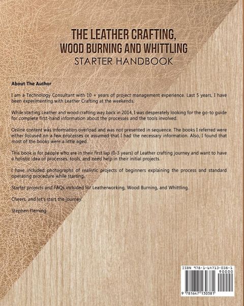 Are you looking for hobbies that can be a favorite weekend pastime for young, old, and teens alike? Well, you can get 3 of them in a single book: Leather Crafting Wood Burning Whittling We all need a few hobbies to unwind, relax, and cut off from the routine chores and excessive technology (Digital Detox). Also, whether you are young, old, or teen, across all age groups, these activities are required for different reasons. So I started writing this book to provide a minimalistic approach to information required to start your first leather project. It covers: Leather Crafting History of Leather Basics Tools and their usage Making Patterns Cutting Patterns Gluing Beveling, Embossing, Stamping Stitching basics Coloring and Finishing Tips, Techniques for the beginner Appendix: List of online resources available for free patterns, tips, and techniqu Wood Burning/Pyrography Introduction to the art: The history and steps involved Tools: All about tools required: Detailed instructions on using Wood Burner including different tips Designing, Tracing, and Shading: I must say the shading part only comes by practicing! Coloring, Polishing, and Finishing Safety Instructions: Very important and highlighted all through the book Step by Step instructions on 10 starter projects with pictures Frequently Asked Questions (All the ones I could remember and not covered in other chapters) Sample Designs: Mandala, Tiger, Dragon, and more. Whittling Introduction: History of Whittling, how it started and became part of popular culture. Wood: All about the type of wood, grains, and tips for starting. Tools: All about pocket and carving knives Techniques: All type of cuts Safety: Gloves, Thumb pads, duct tape, and other innovative options. Starter projects with photos and step by step instructions Frequently asked questions: 22 beginner questions as answered by experts: Multiple solutions to a single problem List of online resources for patterns Well, if you ever wanted to start your Journey in these crafts, this would be the perfect enabler and a guide for you. Why? Because I genuinely believe in the saying, "The best person to guide you is the one few steps ahead of you." So, what are you waiting for? Get this updated book and start your Journey Today!