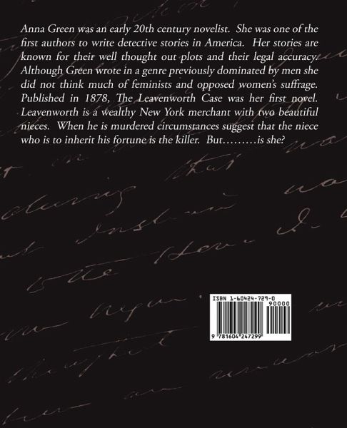 Anna Green was an early 20th century novelist. She was one of the first authors to write detective stories in America. Her stories are known for their well thought out plots and their legal accuracy. Although Green wrote in a genre previously dominated by men she did not think much of feminists and opposed women's suffrage. Published in 1878, The Leavenworth Case was her first novel. Leavenworth is a wealthy New York merchant with two beautiful nieces. When he is murdered circumstances suggest that the niece who is to inherit his fortune is the killer. But...is she?