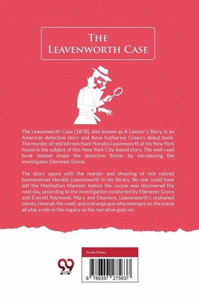 The Leavenworth Case (1878), also known as A Lawyer's Story, is an American detective story and Anna Katharine Green's debut book. The murder of retired merchant Horatio Leavenworth at his New York house is the subject of this New York City-based story. The well-read book helped shape the detective fiction by introducing the investigator Ebenezer Gryce. The story opens with the murder and shooting of rich retired businessman Horatio Leavenworth in his library. No one could have left the Manhattan Mansion before the corpse was discovered the next day, according to the investigation conducted by…mehr