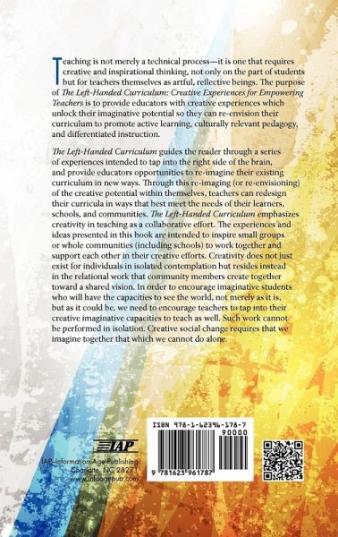 Teaching is not merely a technical process- it is one that requires creative and inspirational thinking, not only on the part of students but for teachers themselves as artful, reflective beings. The purpose of this book is to provide educators with creative experiences which unlock their imaginative potential so they can re-envision their curriculum to promote active learning, culturally relevant pedagogy, and differentiated instruction. This book guides the reader through a series of experiences intended to tap into the right side of the brain, and provide educators opportunities to re-imagine their existing curriculum in new ways. Through this re-imaging (or re-envisioning) of the creative potential within themselves, teachers can redesign their curricula in ways that best meet the needs of their learners, schools, and communities. This book emphasizes creativity in teaching as a collaborative effort. The experiences and ideas presented in this book are intended to inspire small groups or whole communities (including schools) to work together and support each other in their creative efforts. Creativity does not just exist for individuals in isolated contemplation but resides instead in the relational work that community members create together toward a shared vision. In order to encourage imaginative students who will have the capacities to see the world, not merely as it is, but as it could be, we need to encourage teachers to tap into their creative imaginative capacities to teach as well. Such work cannot be performed in isolation. Creative social change requires that we imagine together that which we cannot do alone.