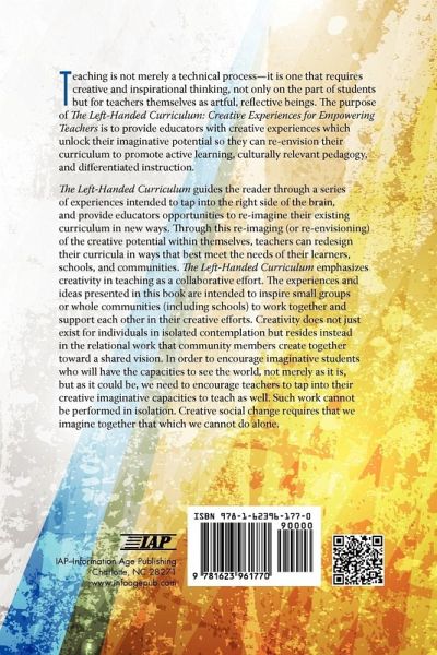 Teaching is not merely a technical process- it is one that requires creative and inspirational thinking, not only on the part of students but for teachers themselves as artful, reflective beings. The purpose of this book is to provide educators with creative experiences which unlock their imaginative potential so they can re-envision their curriculum to promote active learning, culturally relevant pedagogy, and differentiated instruction. This book guides the reader through a series of experiences intended to tap into the right side of the brain, and provide educators opportunities to re-imagine their existing curriculum in new ways. Through this re-imaging (or re-envisioning) of the creative potential within themselves, teachers can redesign their curricula in ways that best meet the needs of their learners, schools, and communities. This book emphasizes creativity in teaching as a collaborative effort. The experiences and ideas presented in this book are intended to inspire small groups or whole communities (including schools) to work together and support each other in their creative efforts. Creativity does not just exist for individuals in isolated contemplation but resides instead in the relational work that community members create together toward a shared vision. In order to encourage imaginative students who will have the capacities to see the world, not merely as it is, but as it could be, we need to encourage teachers to tap into their creative imaginative capacities to teach as well. Such work cannot be performed in isolation. Creative social change requires that we imagine together that which we cannot do alone.
