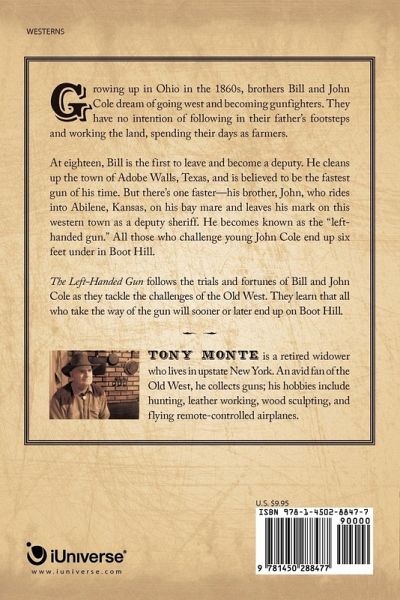 Growing up in Ohio in the 1860s, brothers Bill and John Cole dream of going west and becoming gunfighters. They have no intention of following in their father's footsteps and working the land, spending their days as farmers. At eighteen, Bill is the first to leave and become a deputy. He cleans up the town of Amber Walls, Texas, and is believed to be the fastest gun of his time. But there's one faster-his brother, John, who rides into Abilene, Kansas, on his bay mare and leaves his mark on this western town as a deputy sheriff. He becomes known as the "left-handed gun." All those who challenge young John Cole end up six feet under in Boot Hill. The Left-Handed Gun follows the trials and fortunes of Bill and John Cole as they tackle the challenges of the Old West. They learn that all who take the way of the gun will sooner or later end up on Boot Hill.
