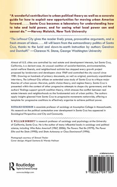 Drawing on hundreds of primary documents, as well as original, previously unpublished interviews, The Leftmost City utilizes an extended case study of Santa Cruz to critique three major theories of urban power: Marxism, public-choice theory, and regime theory.
