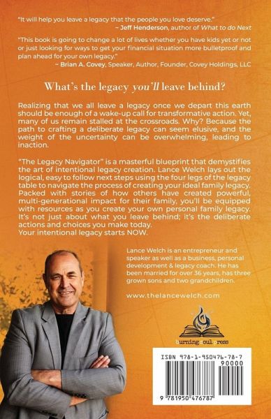 Realizing that we all leave a legacy once we depart this earth should be enough of a wake-up call for transformative action. Yet, many of us remain stalled at the crossroads. Why? Because the path to crafting a deliberate legacy can seem elusive, and the weight of the uncertainty can be overwhelming, leading to inaction. "The Legacy Navigator" is a masterful blueprint that demystifies the art of intentional legacy creation. Lance Welch lays out the logical, easy to follow next steps using the four legs of the legacy table to navigate the process of creating your ideal family legacy. Packed with stories of how others have created powerful, multi-generational impact for their family, you'll be equipped with resources as you create your own personal family legacy. It's not just about what you leave behind; it's the deliberate actions and choices you make today. Your intentional legacy starts NOW.