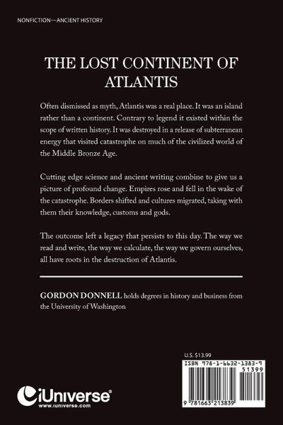 THE LOST CONTINENT OF ATLANTIS Often dismissed as myth, Atlantis was a real place. It was an island rather than a continent. Contrary to legend it existed within the scope of written history. It was destroyed in a release of subterranean energy that visited catastrophe on much of the civilized world of the Middle Bronze Age. Cutting edge science and ancient writing combine to give us a picture of profound change. Empires rose and fell in the wake of the catastrophe. Borders shifted and cultures migrated, taking with them their knowledge, customs and gods. The outcome left a legacy that persists to this day. The way we read and write, the way we calculate, the way we govern ourselves, all have roots in the destruction of Atlantis.