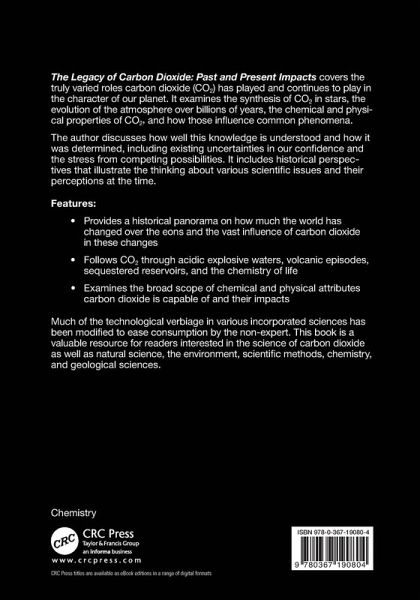 The Legacy of Carbon Dioxide: Past and Present Impacts covers the truly varied roles carbon dioxide has played and continues to play in the character of our planet. Chapters address the synthesis of CO2 in stars, the evolution of the atmosphere over billions of years, the chemical and physical properties of CO2 and how those influence common phenomena. How well this knowledge is understood and how it was determined, including existing uncertainties in our confidence and the stress from competing possibilities are discussed. Much of the technological jargon in various incorporated sciences has been modified to ease consumption by the non-expert. Features: Provides a historical panorama on how much the world has changed over the eons and the vast influence of carbon dioxide in these changes Follows CO2 through acidic explosive waters, volcanic episodes, sequestered reservoirs, and the chemistry of life Examines the broad scope of chemical and physical attributes carbon dioxide is capable of and their impacts Much of the technological verbiage in various incorporated sciences has been modified to ease consumption by the non-expert. This book is a valuable resource for readers interested in the science of carbon dioxide as well as natural science, the environment, scientific methods, chemistry, and geological sciences.