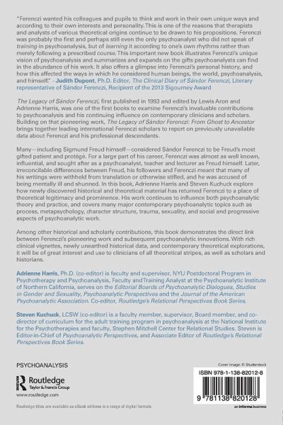 "This fine collection of essays, written by clinicians and scholars of diverse backgrounds, honors the memory of Sándor Ferenczi, Sigmund Freud's closest friend and collaborator, whose groundbreaking contributions to the theory and practice of psychoanalysis were scorned and marginalized by many of his contemporaries. The contributors to this volume have adroitly and sensitively demonstrated the relevance of Ferenczi's ideas to current trends in psychoanalytic thinking and are taking a major step toward restoring his legacy to its rightful place in history."-Peter T. Hoffer, Ph. D. Psychoanalytic Center of Philadelphia; Translator, The Correspondence of Sigmund Freud and Sándor Ferenczi