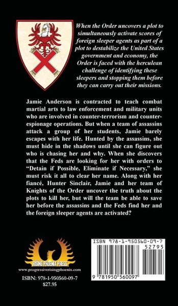When the Order of the Saltire uncovers a plot to simultaneously activate scores of foreign sleeper agents as part of a plot to destabilize the United States government and economy, the Order is faced with the herculean challenge of identifying these sleepers and stopping them before they can carry out their missions. Jamie Anderson is contracted to teach combat martial arts to law enforcement and military units who are involved in counter-terrorism and counter-espionage operations. But when a team of assassins attack a group of her students, Jamie barely escapes with her life. Hunted by the assassins, she must hide in the shadows until she can figure out who is chasing her and why. When she discovers that the Feds are looking for her with orders to "Detain if Possible, Eliminate if Necessary," she must risk it all to clear her name. Along with her fiancé, Hunter Sinclair, Jamie and her team of Knights of the Order uncover the truth about the plots to kill her, but will the team be able to save her before the assassins and the Feds find her and the foreign sleeper agents are activated?