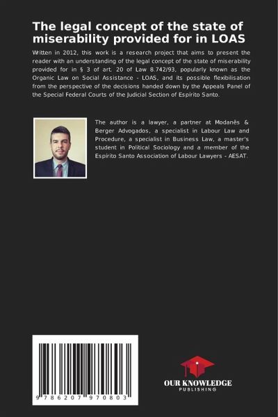 Written in 2012, this work is a research project that aims to present the reader with an understanding of the legal concept of the state of miserability provided for in § 3 of art. 20 of Law 8.742/93, popularly known as the Organic Law on Social Assistance - LOAS, and its possible flexibilisation from the perspective of the decisions handed down by the Appeals Panel of the Special Federal Courts of the Judicial Section of Espírito Santo.