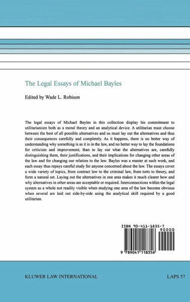 The legal essays by Michael Bayles in this collection display his commitment to utilitarianism both as a moral theory and an analytical device. A utilitarian must choose between the best of all possible alternatives and so must lay out the alternatives and thus their consequences carefully and completely. As it happens, there is no better way of understanding why something is as it is in the law, and no better way to lay the foundations for criticism and improvement, than to lay out what the alternatives are, carefully distinguishing them, their justifications, and their implications for changing other areas of the law and for changing our relation to the law. Bayles was a master at such work, and each essay thus repays careful study for anyone concerned about the law. The essays cover a wide variety of topics, from contract law to the criminal law, from torts to theory, and form a natural set. Laying out the alternatives in one area makes it much clearer how and why alternatives in other areas are acceptable or required. Interconnections within the legal system as a whole not readily visible when studying one area of the law become obvious when several are laid out side-by-side using the analytical skill required by a good utilitarian.